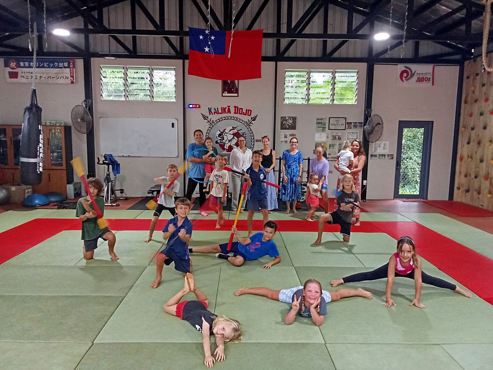 The federation now has three clubs operating across Apia: Crossfit FatuToa, Kalika Dojo and JPs Fitness. Each club is intentionally located in different village areas so families on both sides of town can participate. Weekly sessions are delivered five times per week during school terms, offering KinderGym, Gym4All and Parkour to a growing community.